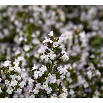 Bjergmynte Vækstforhold: Lys eller letskygget vokseplads.Højde: 40 cmPlantetæthed: 5-6 planter pr kvadratmeterBlomstringstid: Juli – oktober. Skyer af småbitte lyseblå blomster. Øvrige oplysninger: Duftende løv. Søges af bier og sommerfugle. Egnet som bun