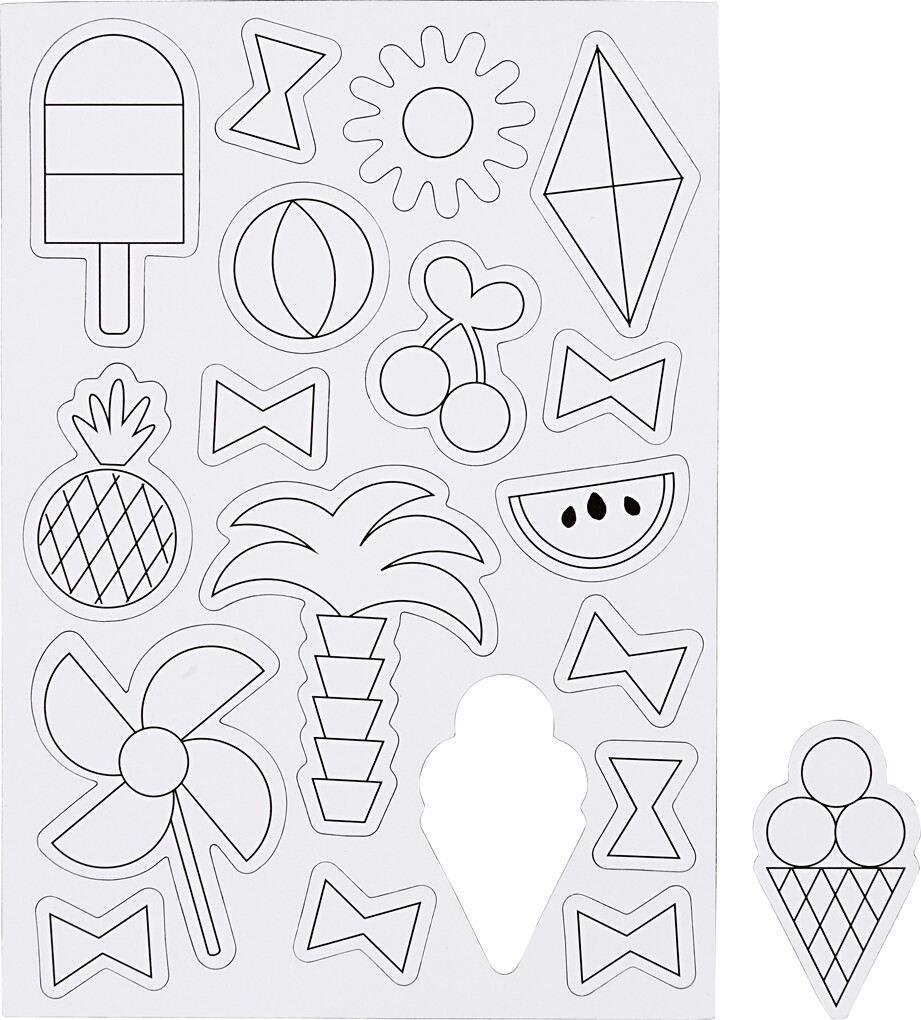 Denne pakke med magneter har et sommer-tema og er perfekt til at dekorere dit køleskab eller magnet…