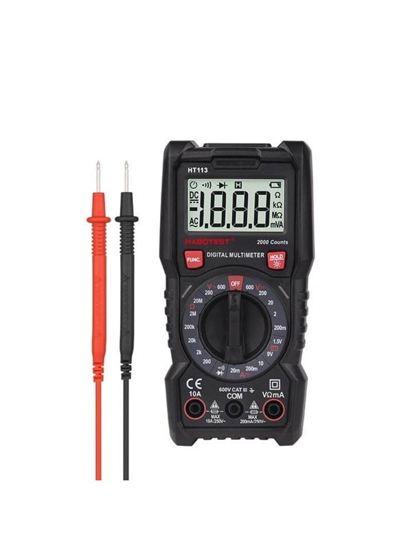 Udstyr dig selv med det lette og praktiske Habotest HT113 digitale universalmultimeter, som giver dig mulighed for nemt og sikkert at måle spænding, strøm, modstand og mange andre værdier. Habotest HT113 er udstyret med et praktisk stativ, så du kan still