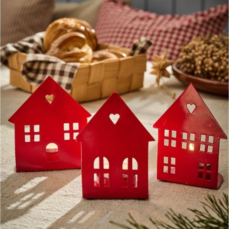 Stage t/ fyrfadslys hus – rød – Ib Laursen vælg ml. 3 forsk.