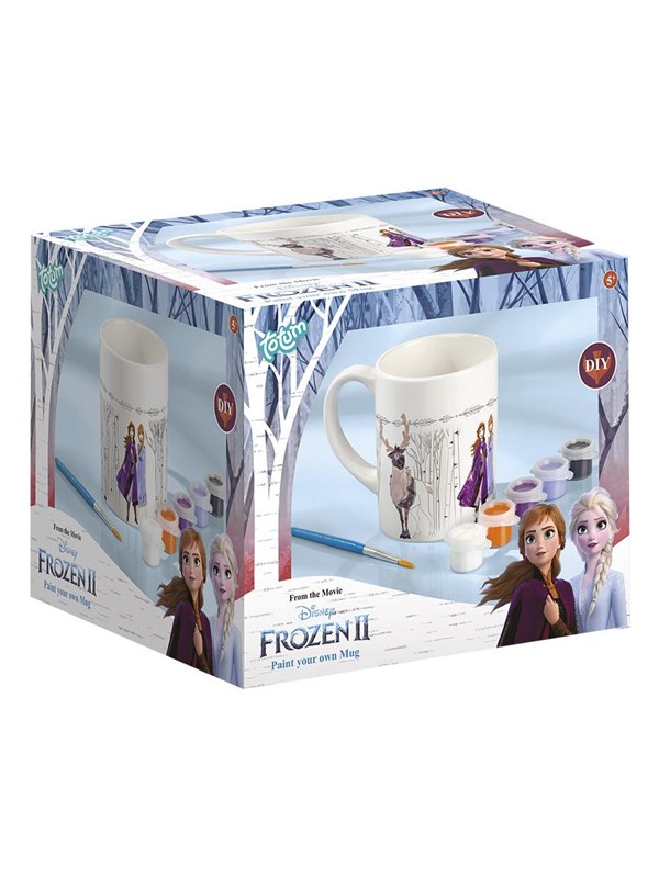 Frossent krus til at male selv. Dimensioner: 12,5 x 12,5 x 10 centimeter. Indhold: 1 krus, 1 malestrimmel med 5 farver, 1 pensel, brugsanvisning. Velegnet til børn fra 5 år.