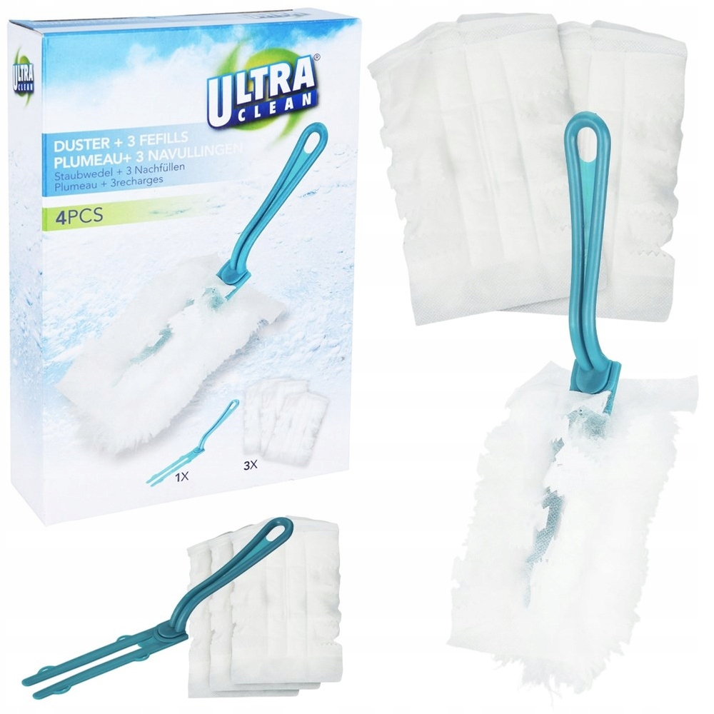 Denne støvkost fra Ultra Clean er et uundværligt redskab i ethvert hjem. Den er designet til at gøre rengøringen let og effektiv med sine tre udskiftelige hoveder. Kosten måler 11,5 x 28 x 6,5 cm, og selve rensefladen på hvert hoved måler 16,5 x 12 cm, hv